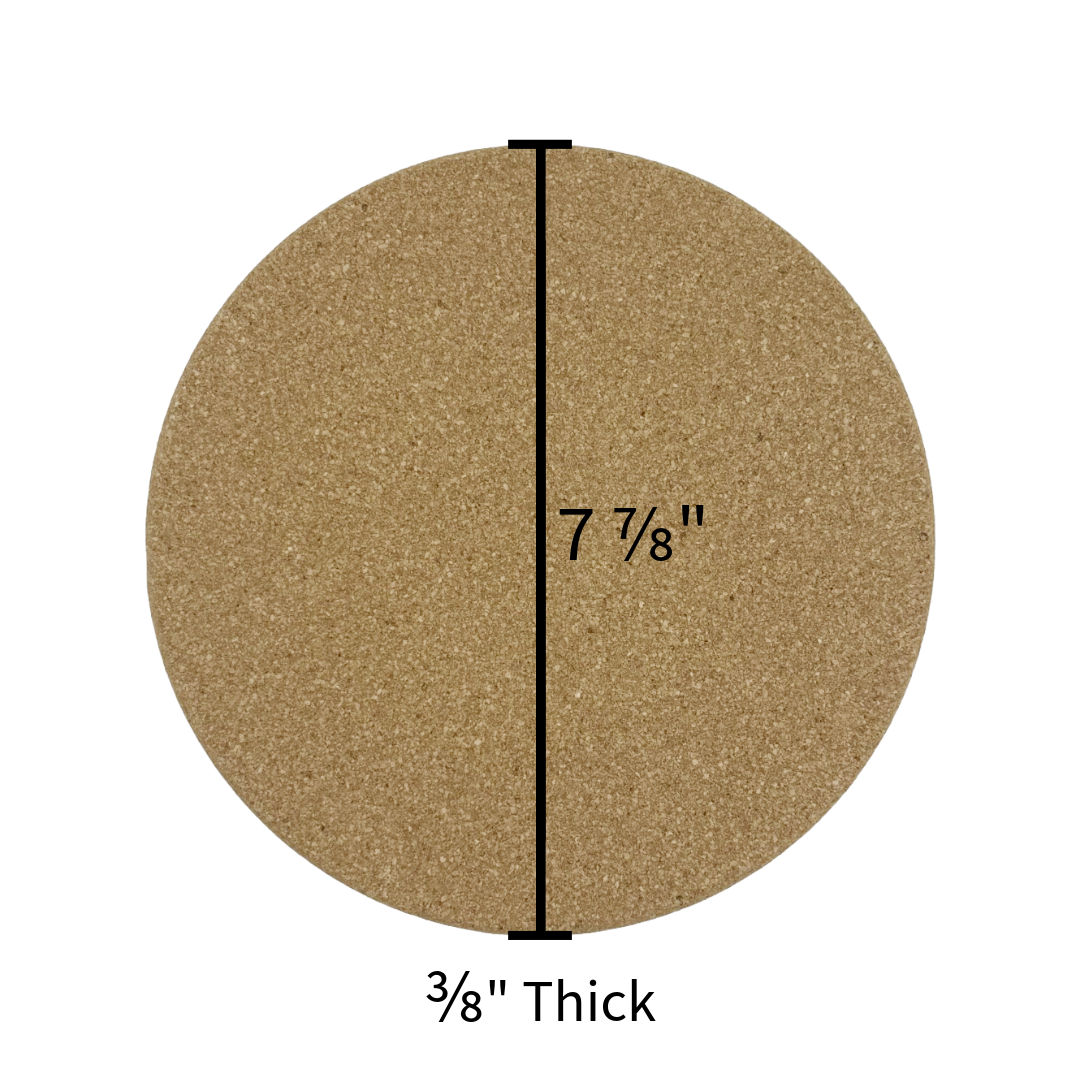 Round Cork Trivet: Diameter: 7 ⅞", Thickness: ⅜"
